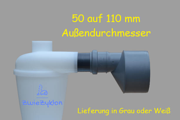 50 auf 110 mm (AußenØ) Reduzierung WEIß Adapter für Zyklonabscheider