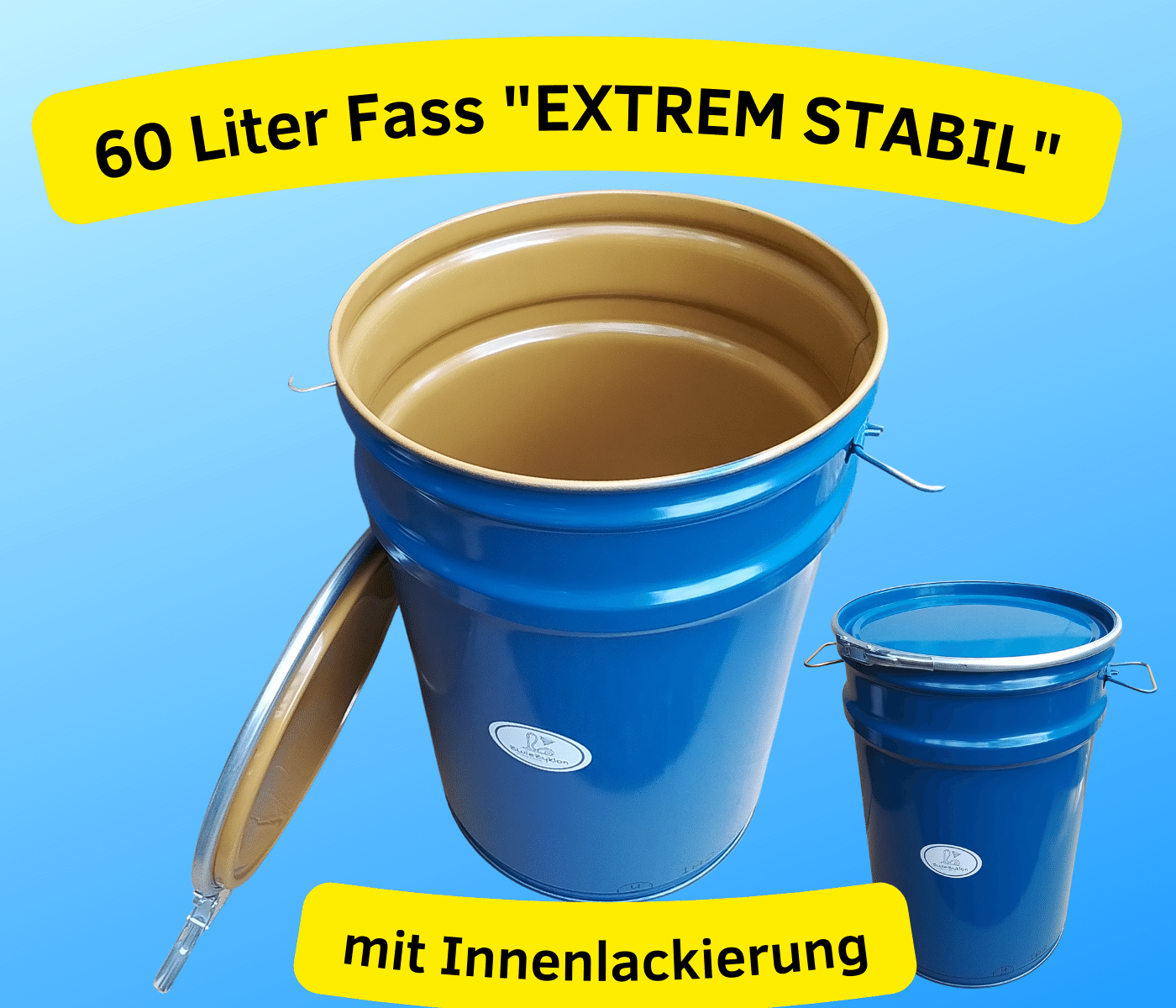 Sehr stabiles und extrem robustes Stahlfass mit Stapelsicke für besonderen Halt und Klappgriffe.